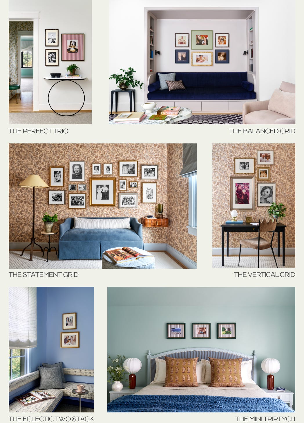 This collection of six gallery wall concepts grew out of my own practice, where we’re constantly weaving art, photography, and mementos into the fabric of a space. I wanted to create designs that felt curated yet deeply personal, with moldings and mats that elevate the everyday without being super obvious. I knew that creating galleries that were interesting in and of themselves would make an artful home accessible to anyone, regardless of budget. Here’s how we got there.