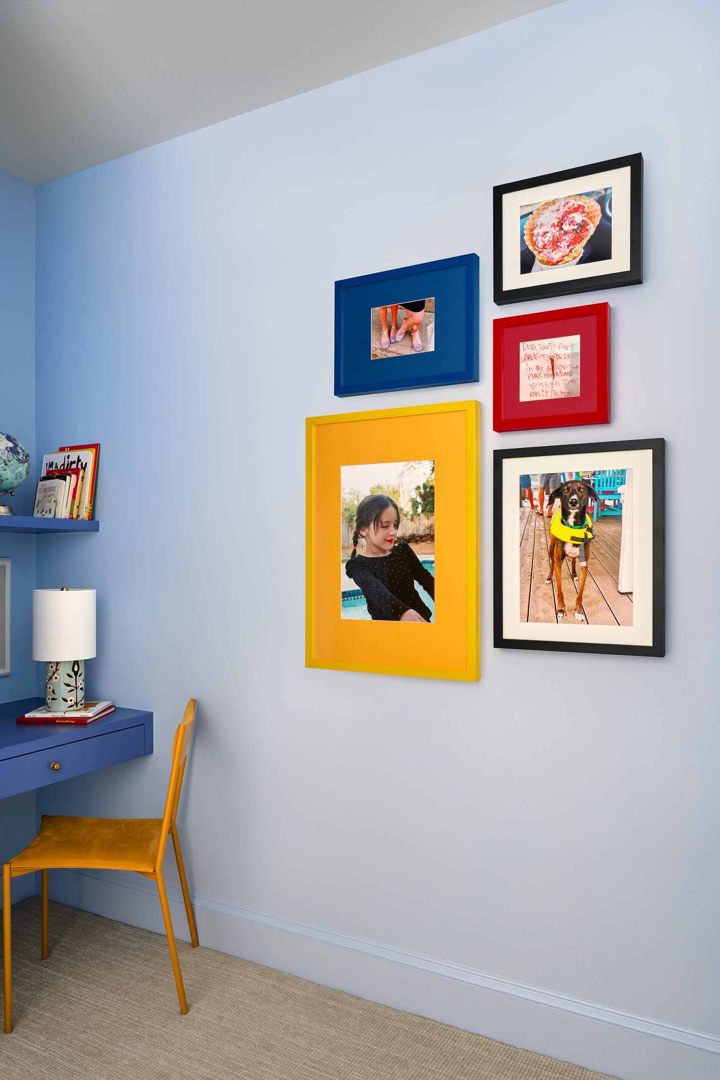 Art and home are inextricably linked in my world. When I start a project, I make sure that the people who live there are present and alive in the design, and art is perhaps the most important channel through which that happens. Art doesn’t need a storied provenance or astronomical value. It doesn’t even need to technically be “art.” I framed a letter my daughter wrote to the tooth fairy because I loved the colors (and the memory). Walls are never just a background—they’re a canvas for meaning and story. Family photos, children’s drawings, vintage finds, the recipe card in your grandmother’s handwriting…all of it deserves to be honored. That’s the philosophy that inspired my new collaboration with Framebridge, now in stores nationwide and at framebridge.com.